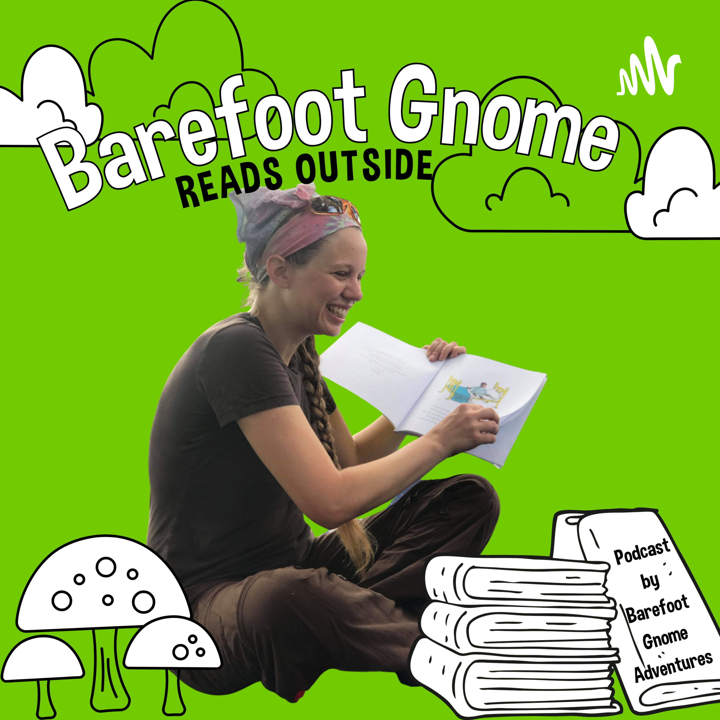 Barefoot Gnome Reads Outside